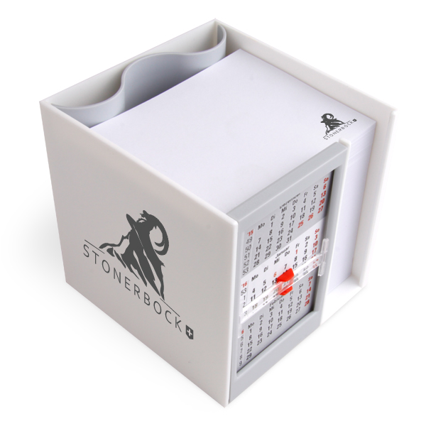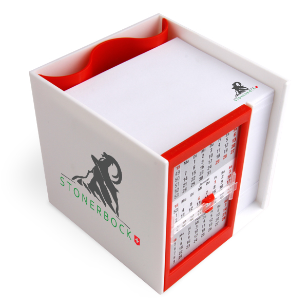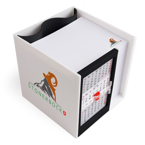 Zettelbox Kalenderbox mit Klappmechanik im Siebdruck mit Einzelblattdruck