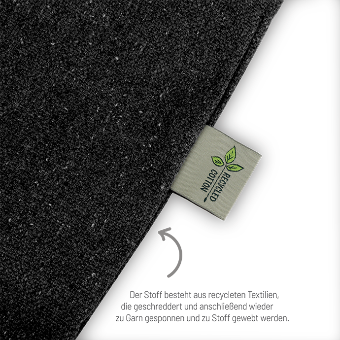 - Material: 90% recycelte Baumwolltextilien - 10% recycletes Polyester (340 g/m²)
