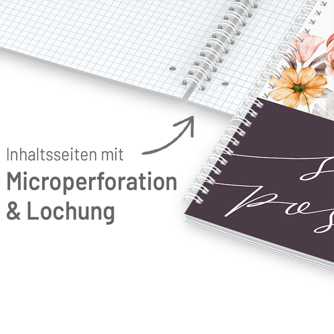 mit Spiralbindung und Mikroperforation an der Längsseite