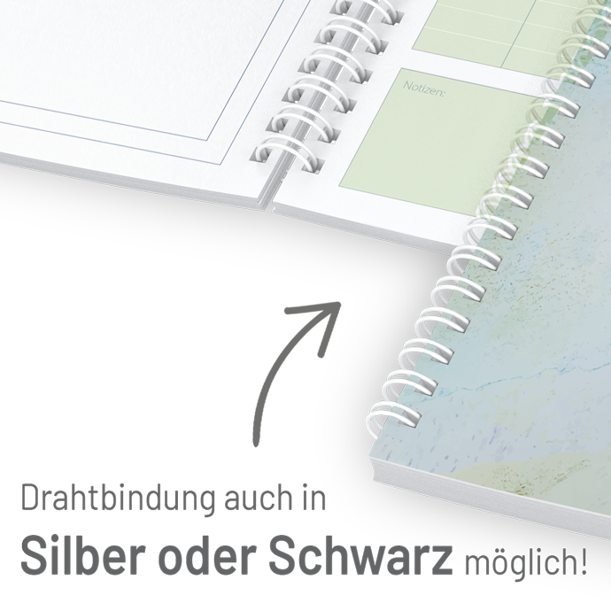 - Wire-O-Bindung in schwarz, silber oder weiß