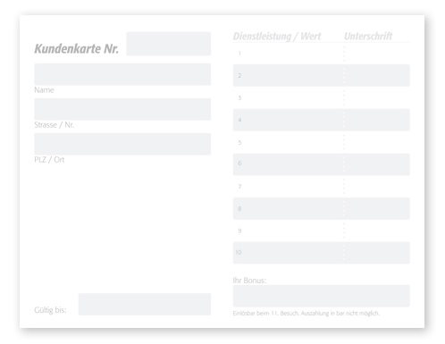 • Kundenkarte klappbar mit Eintragsfeldern innen