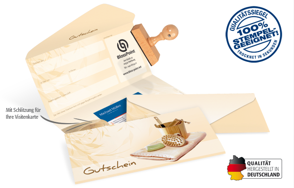 - in Kuvert-Faltform mit Schlitzung für Ihre Visitenkarte