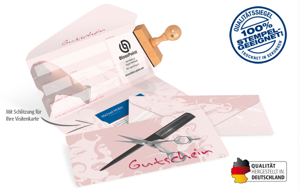 - in Kuvert-Faltform mit Schlitzung für Ihre Visitenkarte