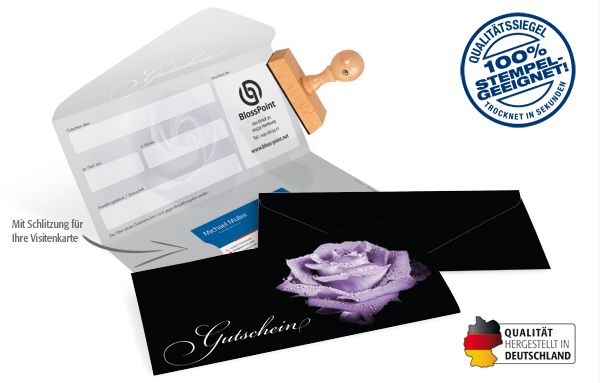 - in Kuvert-Faltform mit Schlitzung für Ihre Visitenkarte