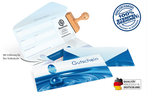 - in Kuvert-Faltform mit Schlitzung für Ihre Visitenkarte
