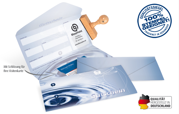 - in Kuvert-Faltform mit Schlitzung für Ihre Visitenkarte