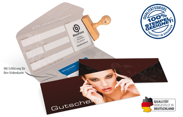 - in Kuvert-Faltform mit Schlitzung für Ihre Visitenkarte