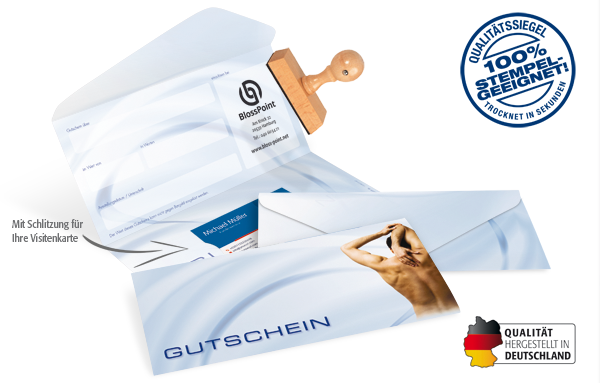 - in Kuvert-Faltform mit Schlitzung für Ihre Visitenkarte