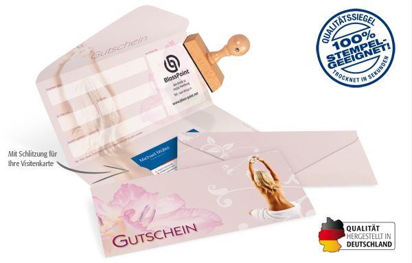 - in Kuvert-Faltform mit Schlitzung für Ihre Visitenkarte