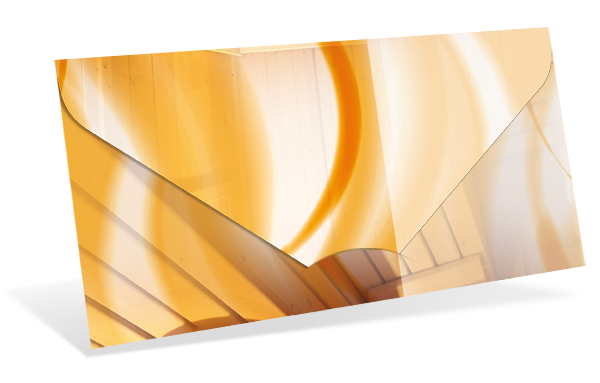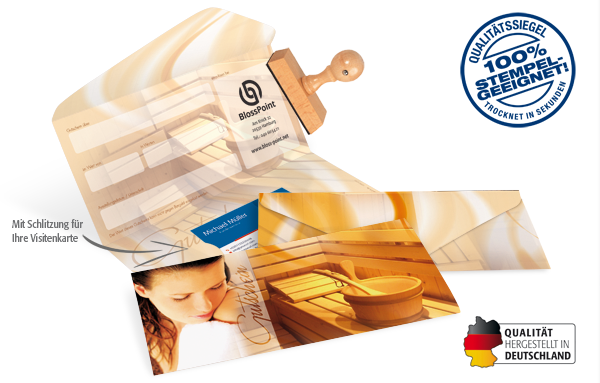 • in Kuvert-Faltform mit Schlitzung für Ihre Visitenkarte