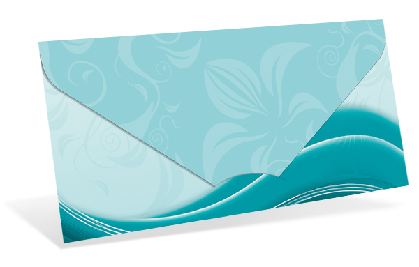 - in Kuvert-Faltform mit Schlitzung für Ihre Visitenkarte