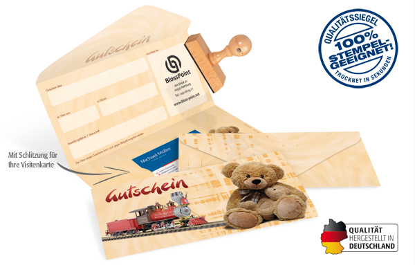 - in Kuvert-Faltform mit Schlitzung für Ihre Visitenkarte