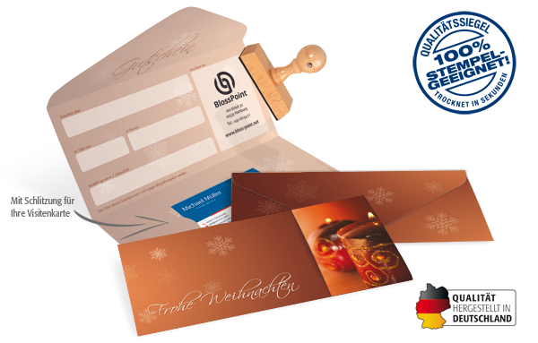 - in Kuvert-Faltform mit Schlitzung für Ihre Visitenkarte
