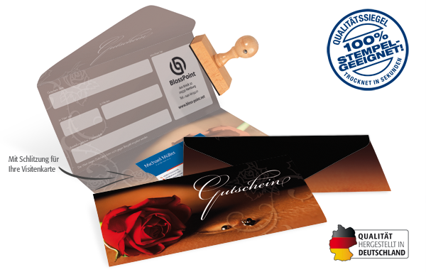 - in Kuvert-Faltform mit Schlitzung für Ihre Visitenkarte
