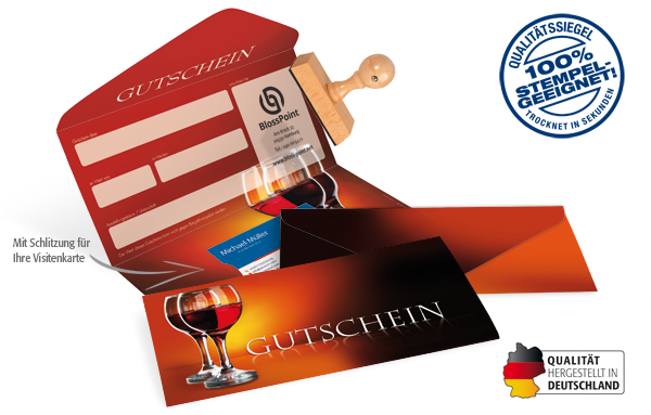- in Kuvert-Faltform mit Schlitzung für Ihre Visitenkarte