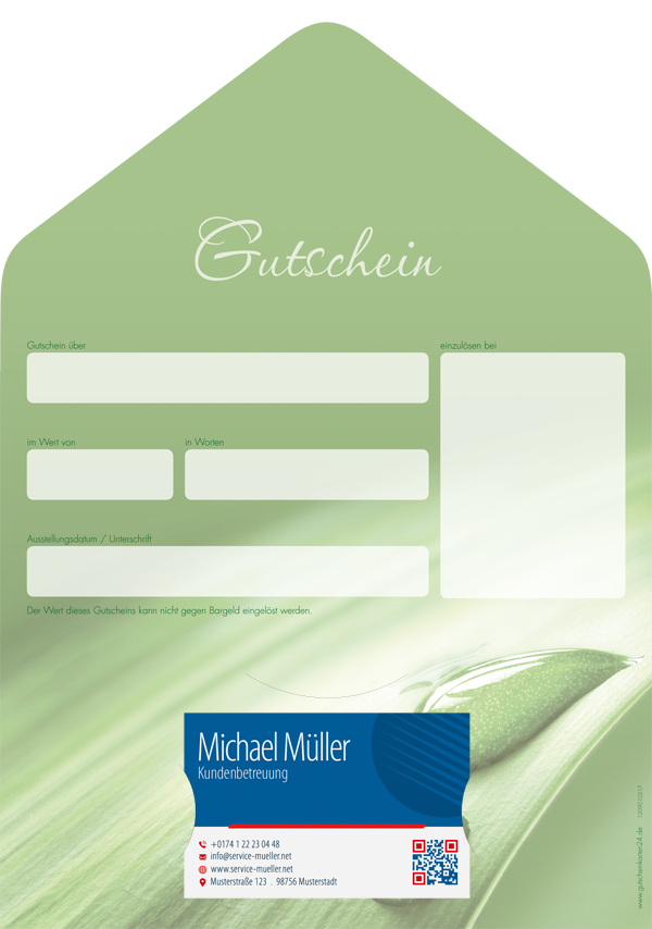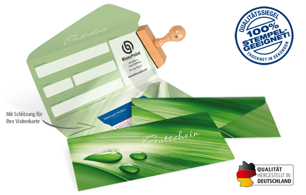 - in Kuvert-Faltform mit Schlitzung für Ihre Visitenkarte