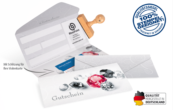 • mit Stempelfreifläche innen und auf der Rückseite