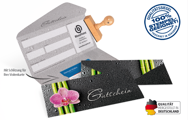 • mit Stempelfreifläche innen und auf der Rückseite