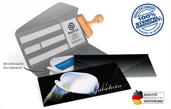 • mit Stempelfreifläche innen und auf der Rückseite