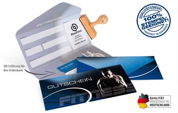- in Kuvert-Faltform mit Schlitzung für Ihre Visitenkarte