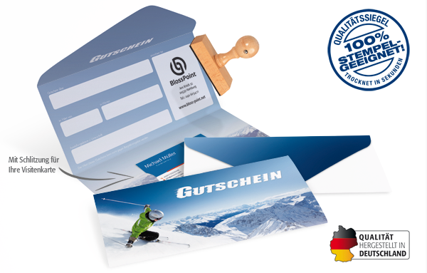 • in Kuvert-Faltform mit Schlitzung für Ihre Visitenkarte