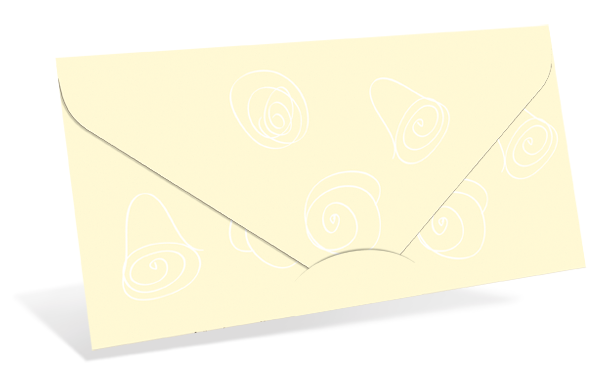 in Kuvert-Faltform mit Schlitzung für Visitenkarten