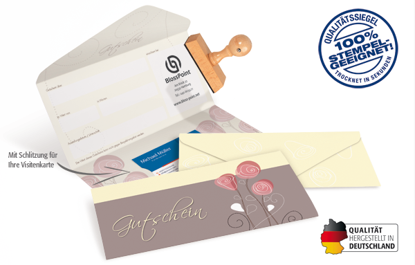 • in Kuvert-Faltform mit Schlitzung für Ihre Visitenkarte