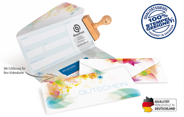 • mit Stempelfreifläche innen und auf der Rückseite
