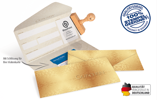 • in Kuvert-Faltform mit Schlitzung für Ihre Visitenkarte