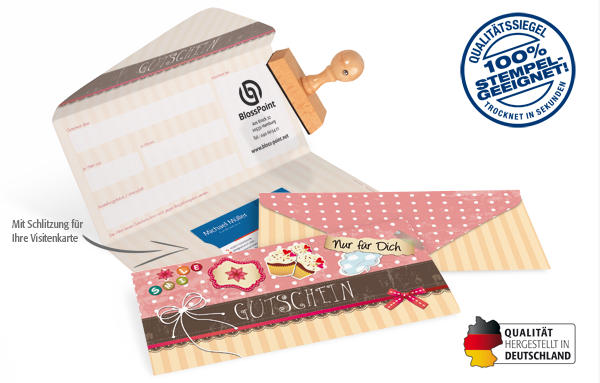 - in Kuvert-Faltform mit Schlitzung für Ihre Visitenkarte