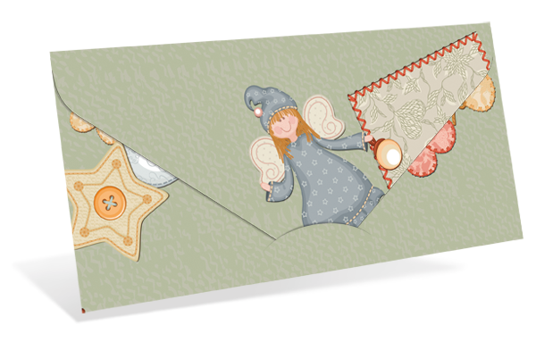 in Kuvert-Faltform mit Schlitzung für Visitenkarten