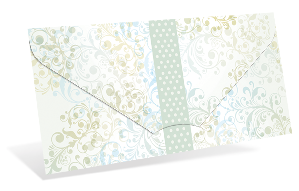 in Kuvert-Faltform mit Schlitzung für Visitenkarten