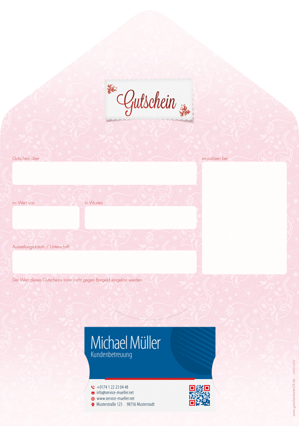 - in Kuvert-Faltform mit Schlitzung für Ihre Visitenkarte