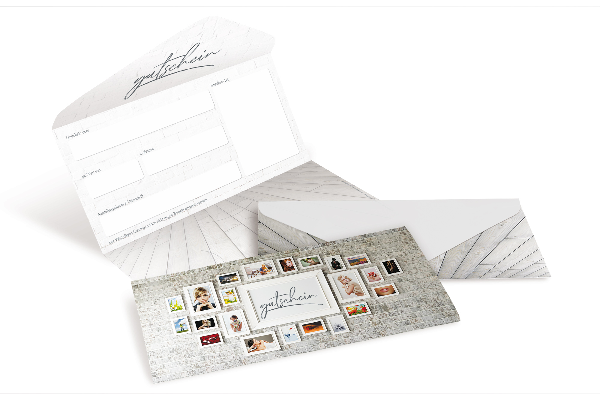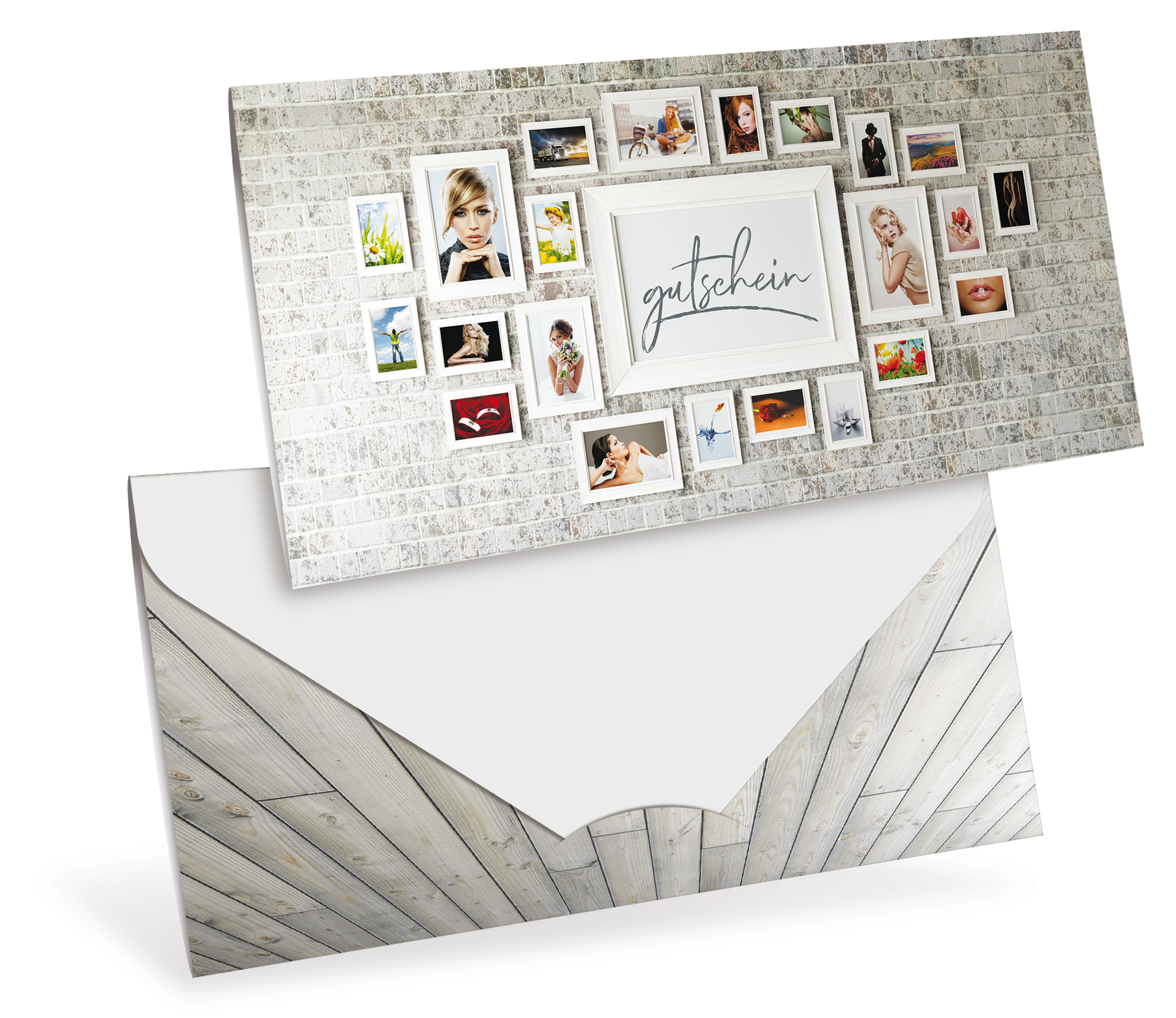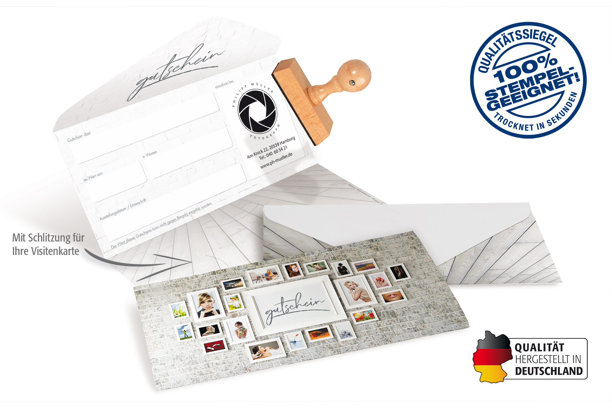- in Kuvert-Faltform mit Schlitzung für Ihre Visitenkarte