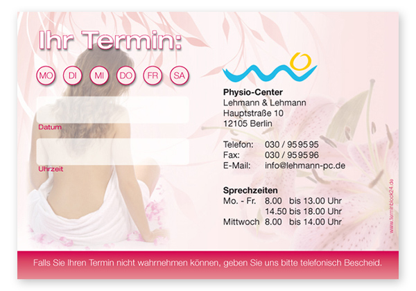Terminzettel "natürlich schön" mit Eindruck - 1 Termin mit Wochentagen