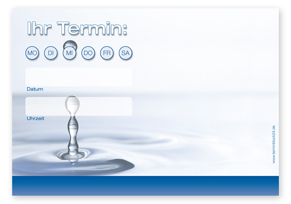 Terminzettel "kühler Tropfen" mit Eindruck - 1 Termin mit Wochentagen