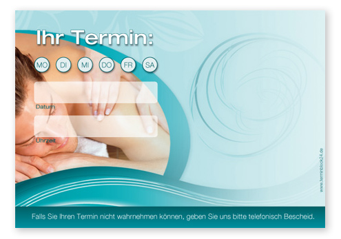 Terminzettel "Wellnesstraum" mit Eindruck - 1 Termin mit Wochentagen