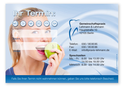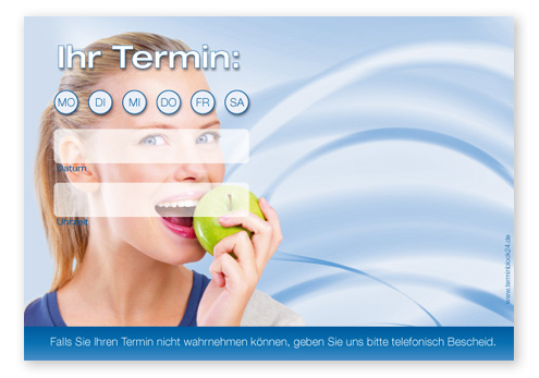 Terminzettel "gesundes Lächeln" mit Eindruck - 1 Termin mit Wochentagen