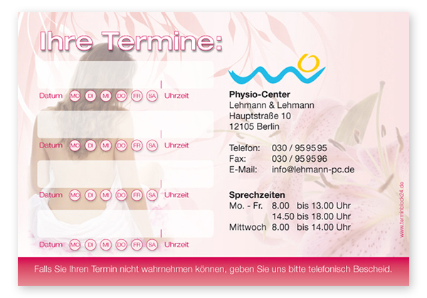 Terminzettel "natürlich schön" mit Eindruck - 4 Termine mit Wochentagen