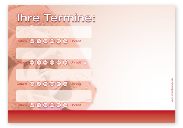 Terminzettel "einsame Rose" mit Eindruck - 4 Termine mit Wochentagen