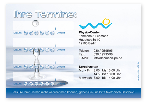 Terminzettel "kühler Tropfen" mit Eindruck - 4 Termine mit Wochentagen