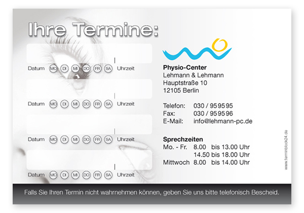 Terminzettel "Augenblick" mit Eindruck - 4 Termine mit Wochentagen