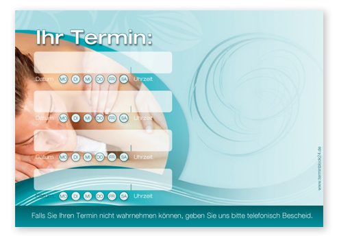 Terminzettel "Wellnesstraum" mit Eindruck - 4 Termine mit Wochentagen