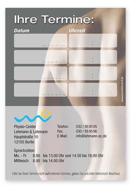 Terminzettel "neue Leichtigkeit" mit Eindruck - 4 Termine mit Wochentagen