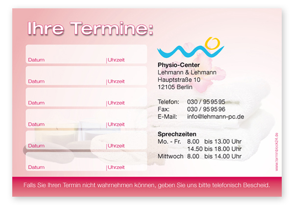 Terminzettel "Zeit zum Entspannen" mit Eindruck - 6 Termine
