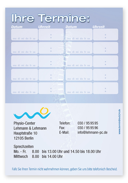 Terminzettel "Da Vinci" mit Eindruck - 10 Termine mit Wochentagen