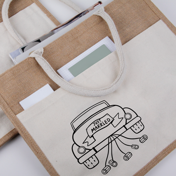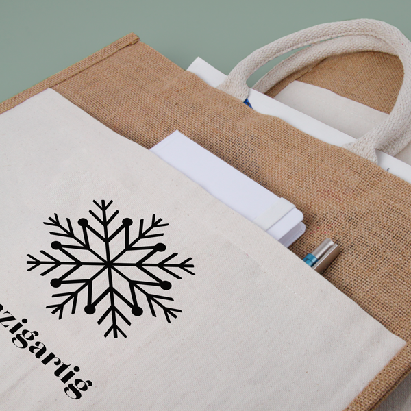 Material: laminierte Jute mit Fronttasche aus Baumwolle