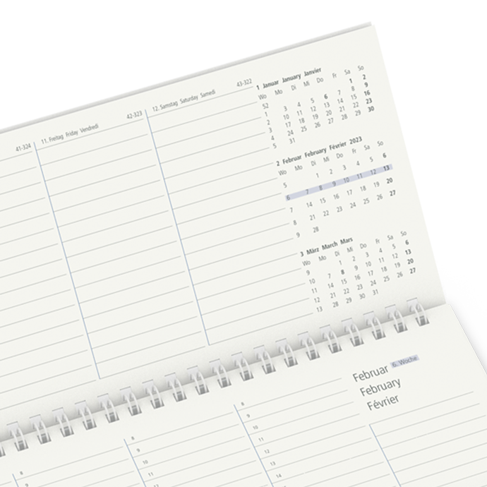 • Gesamtformat 310 x 135 mm, je Woche 2 Seiten