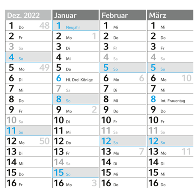 Jahresplaner Gesamtformat: 1350 x 750 mm 4/0-farbig bedruckt im Digitaldruck Kalendarium:... mehr