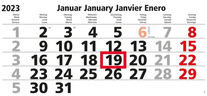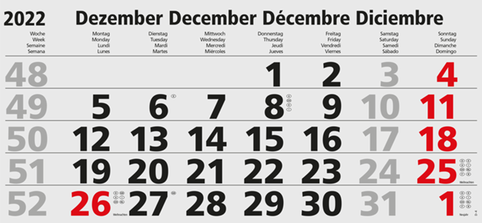 3-Monats-Wandkalender, einzelne Monatsblöcke